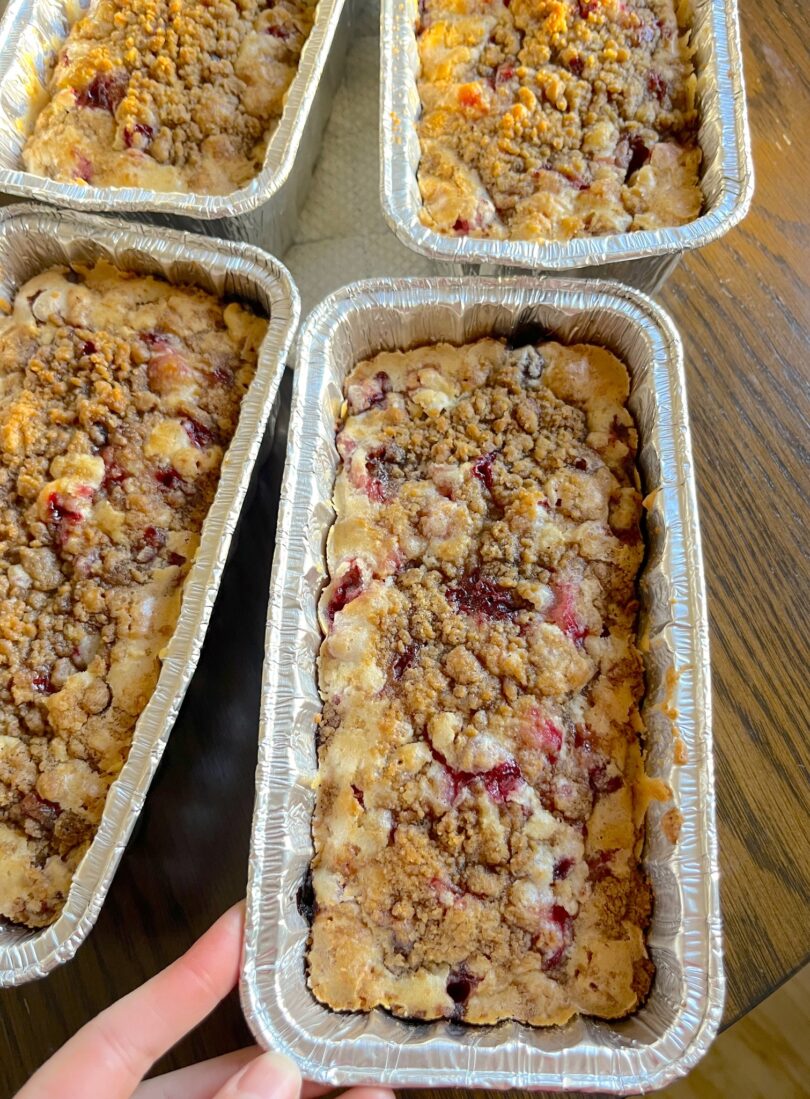 When gift giving season rolls around there’s often a sense of panic that comes with it. Who wants what, when are the best sales, and are we forgetting anyone?? While not all shopping can be avoided, I’ve tried my best to shift to homemade gifts when possible and for me that means food. These Christmas Cranberry Loaves are a fan favorite with friends and family alike and make the perfect last minute goodie. Packed with tart cranberries and topped off with a buttery crumble, it’s sure to be love at first bite.
